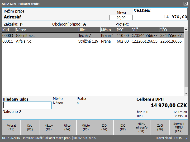 Pokladňa - Režim Adresár resp. vyhľadanie firmy