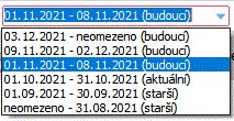 Pri otvorení agendy sa vždy nastaví obdobie, ktoré je aktuálne podľa systémového dátumu. Výberom obdobia platnosti sa aktualizuje zobrazenie zoznamu položiek a ich cien.