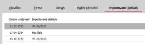 Navigátor v subzáložke Importované doklady