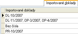 Subzáložka zobrazuje zoznam dokladov doposiaľ naimportovaných do danej faktúry. Nezobrazují se zde všechny doklady, které mohly být použity pro naimportování řádek do aktuálního dokladu, ale jen vybrané doklady, a to typicky ty, u nichž je v jejich řádcích evidováno, co z nich již bylo čerpáno do aktuálního dokladu (viz položka Čerpáno v řádcích takových dokladů). Záložka teda nie je určená na prehliadanie väzieb na prípadné iné doklady. Jej význam je predovšetkým v tom, že je tu možné taký naimportovaný doklad celý odpojiť.