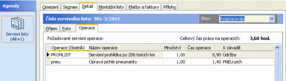 Slúži na zobrazenie a prípadne i zadanie servisných operácií, ktoré sa majú vykonať v rámci daného servisného listu:
