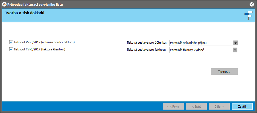 Na závěr je možné si nechat vytvořené doklady vytisknout, pokud jste je nevytiskli již rovnou ve vyvolané agendě v rámci funkce Nastavení tisku po uložení.