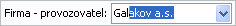 . V tú chvíľu sa hľadajú predmety, ktoré majú ako prevádzkovateľa zadanú firmu, ktorá sa volá Galakov a.s.. Ak to nie je požadovaná firma, môžete buď hľadanie upresniť zadaním ďalších znakov hľadaného reťazca napr. gale (a doplní sa ďalší vyhovujúci Galenit), alebo môžete číselník otvoriť a konkrétnu firmu vybrať (výber bude rýchly, keďže kurzor už bude stáť na prvej firme vyhovujúcej reťazcu) alebo môžete znaky doplnené programom (modré na obrázku vyššie) odmazať a hľadať skutočne len podľa reťazca gal. V tú chvíľu sa budú hľadať predmety, ktoré majú ako prevádzkovateľa zadanú firmu, ktorá vo svojom názve obsahuje gal.