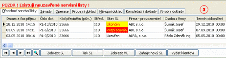 | Obsiahnuté subzáložky: | Predchádzajúce servisné listy | Chyby | Operácie | Predajný doklad | Nákupný doklad |