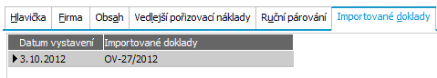 Subzáložka Importované doklady