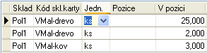 Pritom sa snaží zoskupiť k sebe riadky na rovnaký tovar, tzn. s rovnakým skladom, sklad. kartou, jednotkou, vzťahom jednotky k 1 a príp. šaržou. Platí to ako pre riadky ručne zadávané, tak pre riadky predvyplnené podľa skladového dokladu. Ako sa riadky predvyplnia, je pre všetky polohovacie doklady podobné a bolo popísané v popise Práce s riadkami NPZ vystavovaného podľa PR.