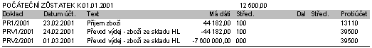 Vykonáme závierku obdobia 2001 a dostaneme závierkové prehľady: