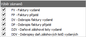 Z ponúknutých radov teda vyberiete tie rady fakturačných dokladov, pre ktoré chcete uskutočniť medzičasovú uzávierku, tzn. vygenerovať nerealizované kurzové rozdiely k zadanému dátumu. Je možné triediť kliknutím na hlavičku stĺpca a vyberať i hromadne pomocou lokálnej ponuky menu, viď popis vykonávania novej uzávierky.