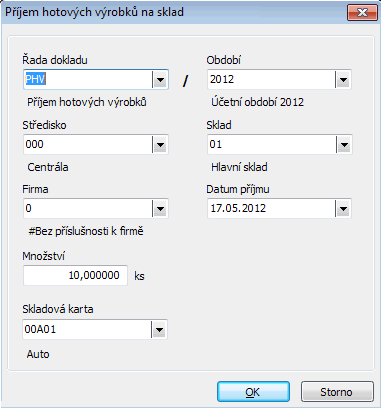 Ide o funkčné tlačidlo s voľbou, kde môžete zvoliť jednu z možností: Slúži na vytvorenie príjemky hotových výrobkov (PHV) na sklad. Príjemku je možné vytvoriť pre viacero označených dokončených výrobkov.