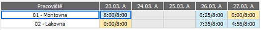 Buňky kap. plánu se zatrženým parametrem Pozastavit do konce směny. Použití je vhodné např. v provozu, ve kterém jedno pracoviště převáží z důvodu efektivity hromadně výsledek své práce až na konci směny dalšímu pracovišti. |