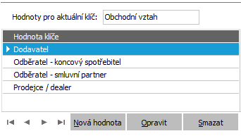 Ke klíči Obchodní vztah postupně nadefinujeme pomocí funkce Nová hodnota čtyři hodnoty podle následujícího obrázku a uložíme: