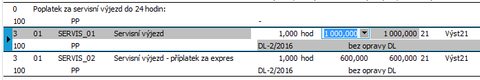 DL-2/2016 se vytvořil automaticky po uložení faktury vydané na zbývající část objednávky OP-1/2016 a zahrnuly se do něho i nově přidané řádky za servisní služby.