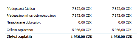 Ve spodní části se zobrazuje celková informace o zaplacení: