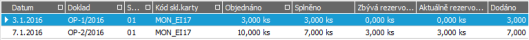 Přehled o objednaném zboží MON_EI17, tedy zbývá dodat 10ks.