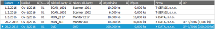 Příklad řádků příjemky.