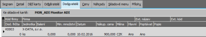 Příklad záložky Dodavatelé se seznamem dodavatelů dané skladové karty.