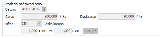 Položky týkající se pořizovací ceny z Detailu dílčí skladové karty.