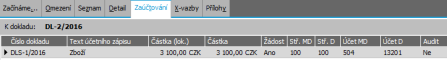 V záložce Zaúčtovanie si můžeme u souhrnně účtovaných dokladů prohlížet buď jen zaúčtování konkrétního zdrojového dokladu, anebo vidět všechny zdrojové doklady, které byly tím samým souhrnným dokladem účtovány. Je-li zatržena položka