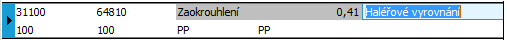 Záložka Rozúčtování - řádek se zaokrouhlením vypočteným pro danou fakturu, předkontovaný dle základní předkontace.