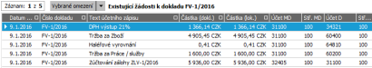 Výsledné řádky účetního zápisu pro náš doklad, které jsou v účetních žádostech.