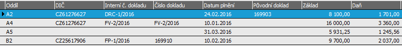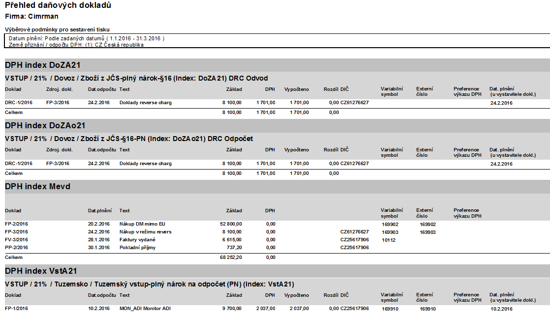 Příklad reportu Přehledu daňových dokladů.