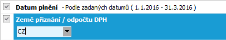 Otevřeme agendu Uzávierky DPH. Viz modul Účtovníctvo→záložka DPH. Vyvoláme funkci F2=Nový. V průvodci uzávěrkou zadáme omezující kritéria pro doklady, které se mají do uzávěrky DPH zahrnout, tedy časové období, za které odvádíme DPH. V našem příkladu např. čtvrtletní za období 1.1.2016 -31.03.2016. Dále musíme určit, jakou definici DPH přiznání použít.