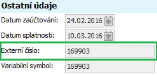 Doplňkové číslo dokladu v hlavičce Faktury vydané.