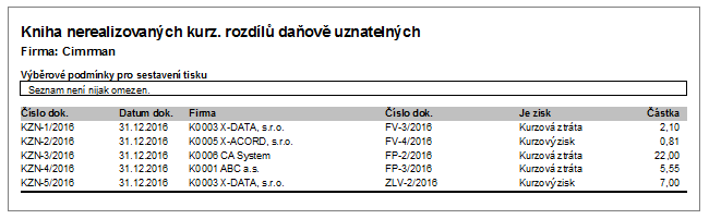 V našem případě uzávěrka vygenerovala kurzovou ztrátu k FP-3/2016, a dále závěrkové kurzové rozdíly:
