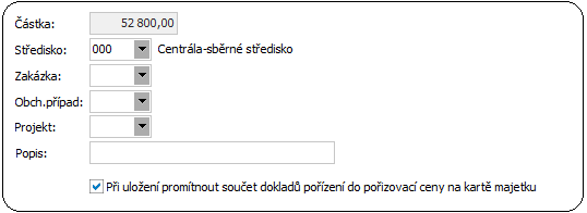 V hlavičce pak zatrhneme, že se doklad pořízení má promítnout do Pořizovací ceny daného majetku: