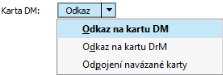 V položce karta DM vybereme Odkaz na kartu DM, po jejím stisku se nabídne Průvodce pro dohledání karty majetku. ABRA vzhled modrý.