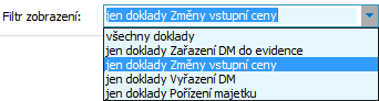 Ve Filtru zobrazení v horní části okna zvolíme "jen doklady Změny vstupní ceny":