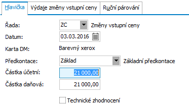Dále viz podrobný help. Kap.: Precenenie - Zvýšenie ceny (zmena ceny, technické zhodnotenie) a kap. Změny vstupní ceny (ZC).
