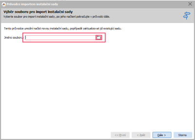 Otvorí sa okno Sprievodcu importom inštalačnej sady. Tu klikneme na ikonu zložky.