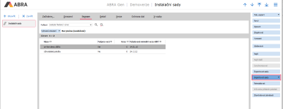 Inštalačnými sadami môžu byť riešené rôzne Doplnky systému ako napr. EKO-KOM a podobne. V takom prípade získate inštalačnú sadu spravidla od svojho obchodníka. Inštalačnou sadou môžu byť riešené zo strany ABRA Software s.r.o. tiež rôzne situácie, ako je napr. naplnenie číselníkov, vytvorenie importných a exportných definícií, naplánovaných úloh, obmedzení atď. V takých prípadoch je inštalačná sada na stiahnutie na konkrétnej stránke, ku ktorej sa sada vzťahuje, v on-line nápovede. Napríklad inštalačná sada pre EDI je pripravená na stiahnutie tu, prípadne môže byť inštalačná sada tiež súčasťou PDF príručky, viď príručka Kroky mesačnej uzávierky (inštalačná sada na stiahnutie na strane 3).