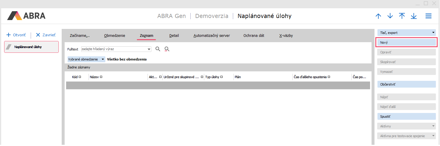 Spustíme agendu Naplánované úlohy a stlačíme tlačidlo Nový.