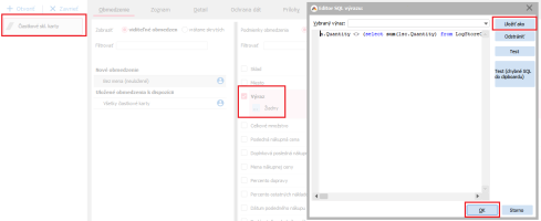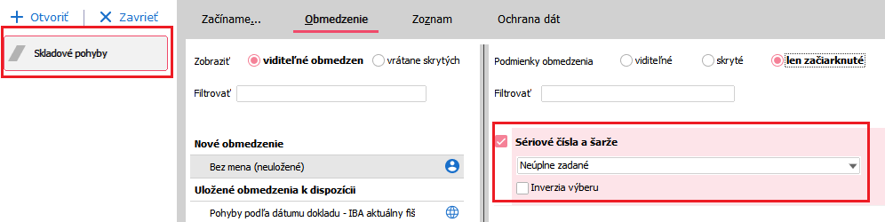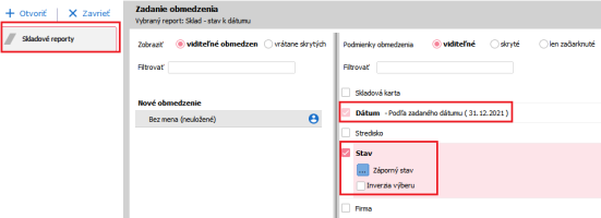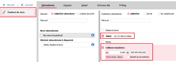 Agenda Čiastkové skl. karty a zde omezíme podle obrázku níže.