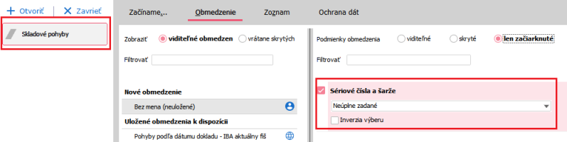 Nezapomeňte si kromě výrazu omezit ještě za sklad a zvolit sklad, který polohujete.
