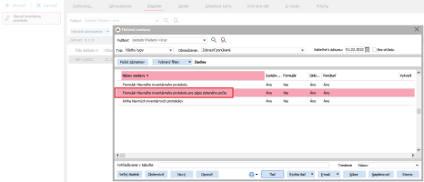 Po uzavření všech Dílčích inventárních protokolů se uzavřou řádky na Hlavním inventárním protokolu, čímž se vygenerují doklady Inventárny prebytok (zostatok) nebo Inventárne manko.