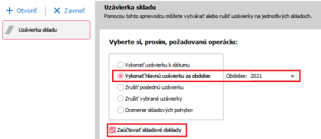 Po dokončení inventury je ještě potřeba provést uzávěrku skladu a zaúčtování.