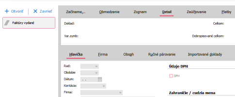 Hľadaný doklad sa nám otvorí na záložke Detail.
