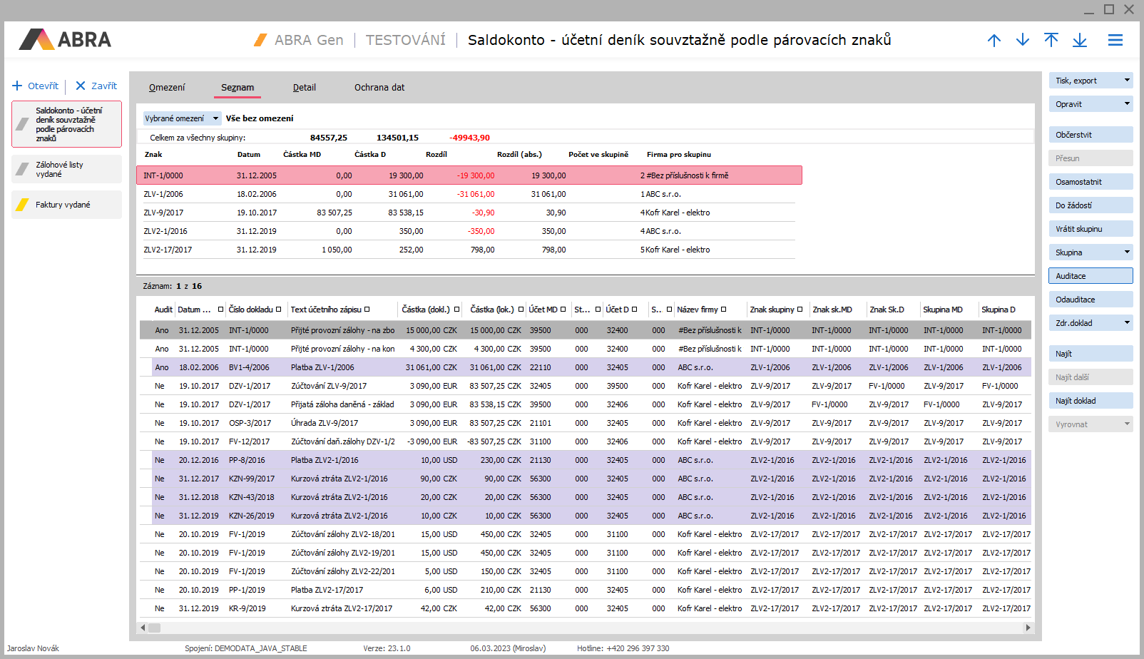 Uvidíme, že opravdu obě faktury jsou v jedné saldokontní skupině: