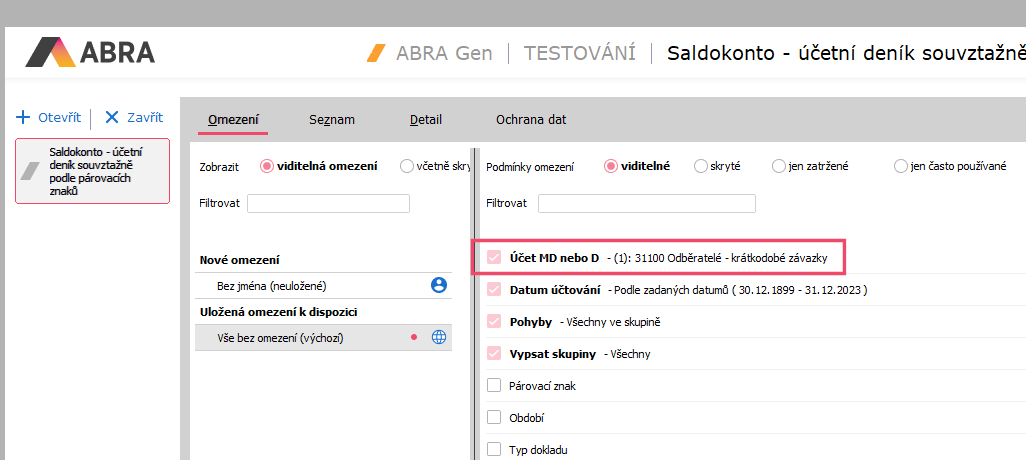Nyní si Občerstvíme výpis saldokonta dle Omezení z bodu 1.