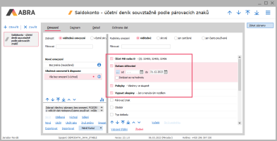 Zadáme omezení stejně jako v návodu Ako na saldokonto - pre mierne pokročilých. Např. takto: