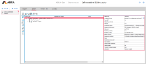 Kopie definice exportu se přímo otevře k editaci. Klikneme na název exportu, čímž se v pravé části zobrazí Vlastnosti.