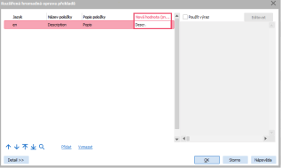 Volba Rozšírená hromadná oprava prekladov je k dispozici pouze v těch agendách, které podporují hromadné rozšířené opravy a pro které současně existuje definice překladů.