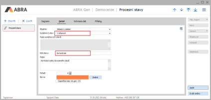 My z nich využijeme bez úprav dva. Potřebujeme tedy ještě jeden. Po stisku tlačítka Nový zadáme nový stav následovně a uložíme tlačítkem Uložit: