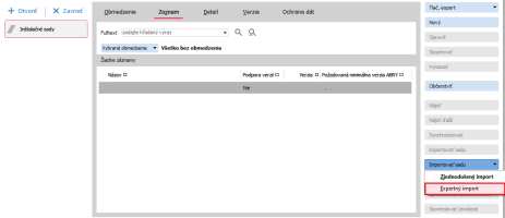 Otevřete agendu Inštalačné sady, zde tlačítko Importovat sadu a z multi volby vybrat volbu Expertní import.
