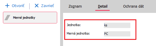 Jeho naplnění je snadné. Do pole Jednotka zadáte jednotku používanou v systému ABRA Gen a do pole Měrná jednotka zadáte jednotku dle mezinárodní soustavy jednotek.