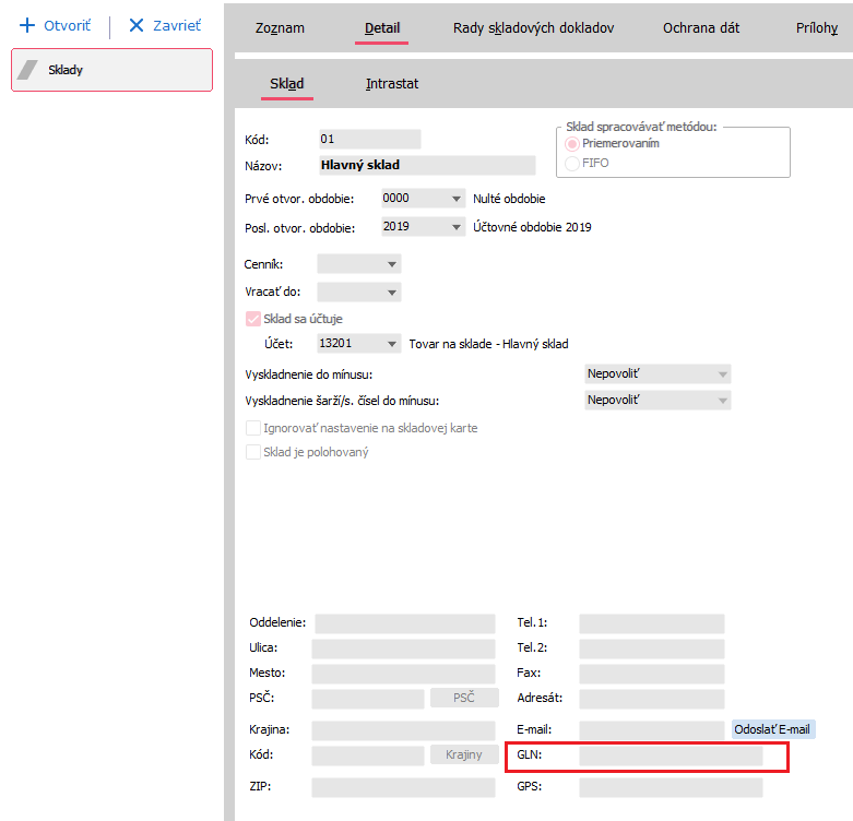 Nastavení GLN na používaných skladech