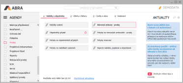 Agenda Pohyby na rámcových zmluvách - predaj